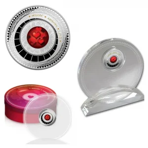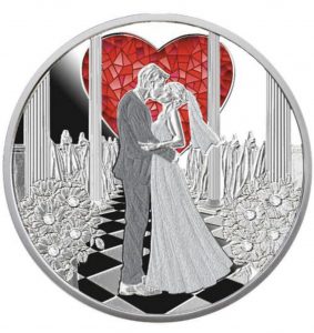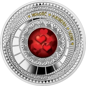 Срібна монета «Любов» з серії «Світ твоєї душі» випущена у 2015 році островом Ніуе вражає своєю символічністю та незвичайним дизайном. Вона виготовлена з високопробного срібла 999, що підкреслює її колекційну та інвестиційну цінність. Тематика монети присвячена почуттю, яке здавна надихає людей – любові.