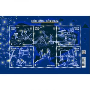 Поштовий випуск «Воїни світла. Воїни добра» присвячений темі світла, яке перемагає темряву. Серія складається з п’яти марок, на яких зображені люди, що щодня самовіддано відновлюють нормальне життя українців: енергетики, газовики, працівники водопостачання, дорожники та зв’язківці. Вони повертають у домівки світло, тепло, воду, газ, відновлюють дороги й комунікації. Аркуш відзначається яскравим сяйвом під ультрафіолетовим світлом і виготовлений із використанням технології вибіркового лакування.