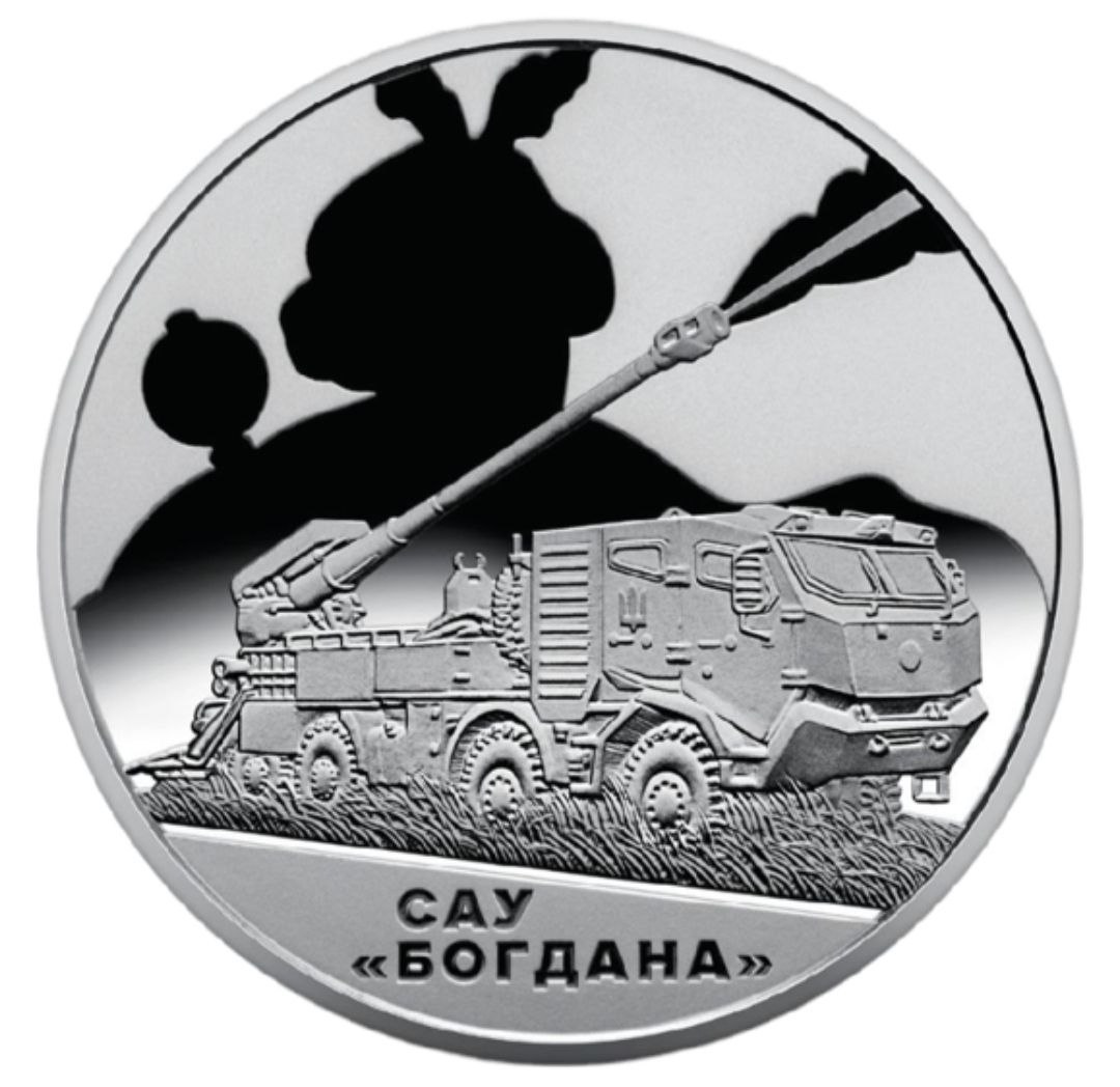 Пам’ятна монета присвячена самохідній артилерійській установці “Богдана” – знаковому символу військової потужності та інженерної майстерності України. Ця 155-мм гаубиця на колісному шасі, розроблена з урахуванням передових технологічних рішень, стала ключовим елементом артилерійського потенціалу Збройних Сил України. Завдяки високоточному ураженню цілей вона демонструє стратегічну місію українського оборонно-промислового комплексу.