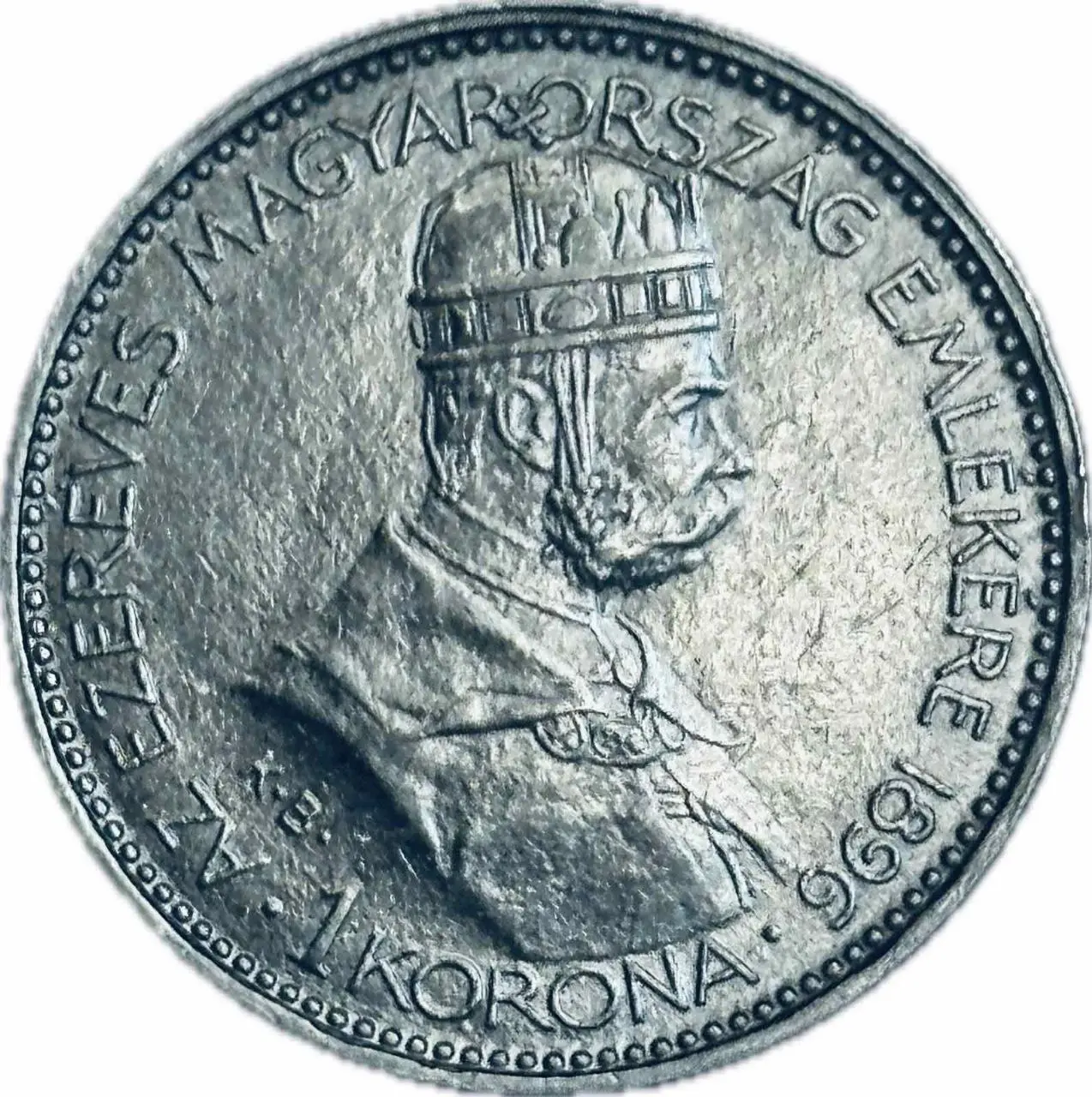 Ця угорська пам’ятна монета номіналом 1 крона 1896 року випущена на честь тисячоліття Угорщини, відзначаючи 1000 років існування угорської держави. Монета присвячена історичній спадщині країни та вшановує правителів, які відіграли важливу роль у формуванні національної ідентичності. Вона є цінним зразком нумізматики Австро-Угорщини та користується значним інтересом серед колекціонерів.