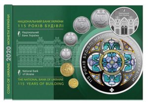 Цей колекційний набір “Монети України 2020” присвячений 115-річчю будівлі Національного банку України та об’єднує повний комплект обігових монет України разом із пам’ятною медаллю, створеною спеціально до ювілейної дати. Набір оформлений у стильному подарунковому буклеті з зображенням історичної будівлі НБУ та декоративних елементів її архітектури. Комплект є цінним як для колекціонерів, так і для поціновувачів сучасної української нумізматики.