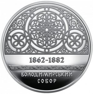 Пам'ятна монета присвячена одній з архітектурних перлин Києва - Володимирському собору. Побудованому у неовізантійському стилі він привертає увагу як своєю історією, так і внутрішнім розписом - справжнім шедевром мистецтва. Більше 10 років продовжувалися роботи над внутрішнім оздобленням храму, унікальні розписи якого і є його основною цінністю.