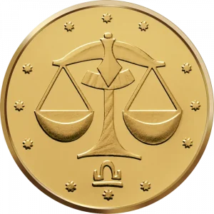 Вишукана золота монета НБУ із серії «Знаки зодіаку». Чисте золото Au 999,9, вага 1,24 г, на реверсі — елегантні терези, на аверсі — символіка чотирьох стихій і сонця. Ідеальний подарунок людям, народженим під знаком Терезів, та стильне поповнення колекції українського золота.