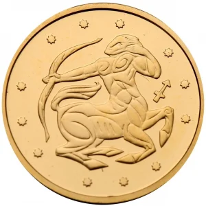 Вишукана золота монета НБУ із серії «Знаки зодіаку». Чисте золото Au 999,9, вага 1,24 г. Подарунок із характером для народжених під знаком Стрільця та стильне поповнення колекції українського золота.