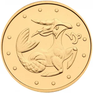 Вишукана золота монета НБУ із серії «Знаки зодіаку». Чисте золото Au 999,9, вага 1,24 г. Ідеальний подарунок для народжених під знаком Козерога та стильне доповнення колекції українського золота.
