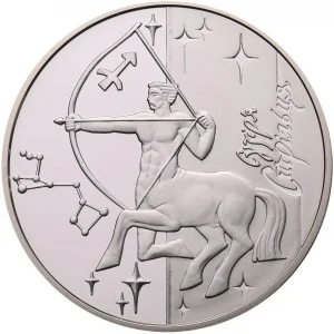 Серебряная монета НБУ с аллегорическим образом Стрельца и солнечной символикой времен года на аверсе. Элегантный памятный подарок родившимся под знаком Стрельца и достойный экспонат коллекции украинского серебра. О знаке: Стрелец – знак огня (22 ноября – 21 декабря), под покровительством Юпитера. Ему свойственны оптимизм, прямота, любовь к свободе, странствиям и новым знаниям.