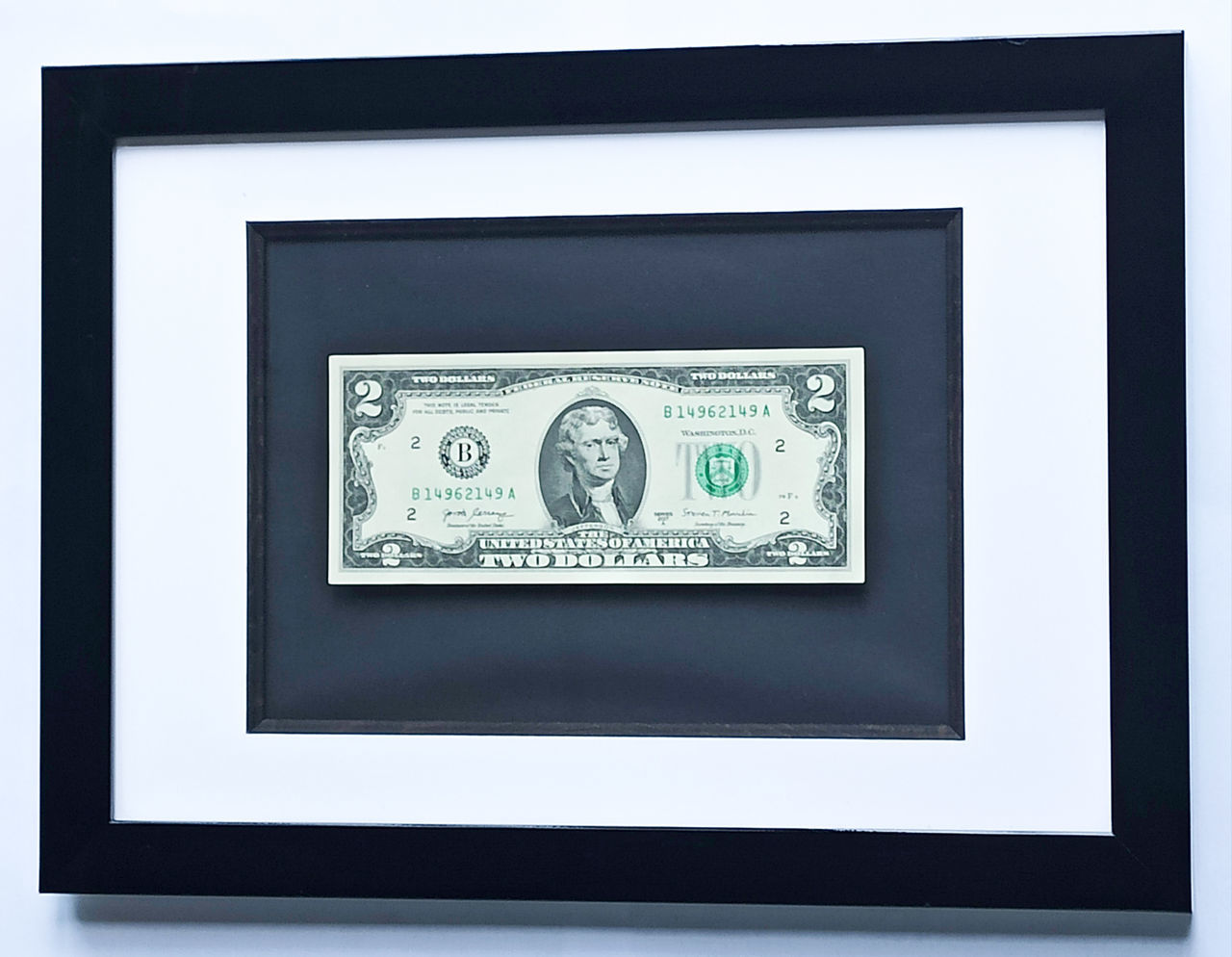 Банкнота номіналом 2 долари в стильній рамці