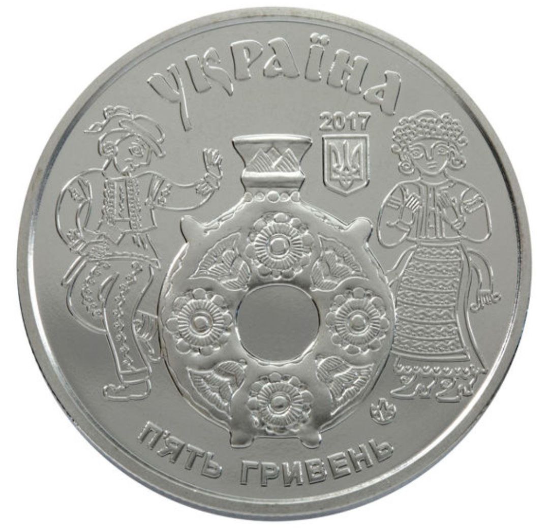 На аверсі монети розміщено: угорі півколом напис УКРАЇНА, під яким праворуч – рік карбування монети 2017 та малий Державний Герб України; стилізовану композицію: на дзеркальному тлі в центрі – куманець із розписом, праворуч і ліворуч від якого зображено фігури дівчини та хлопця в національних костюмах – елементи косівських розписів; унизу – півколом номінал – П`ЯТЬ ГРИВЕНЬ та логотип Банкнотно-монетного двору Національного банку України (праворуч).