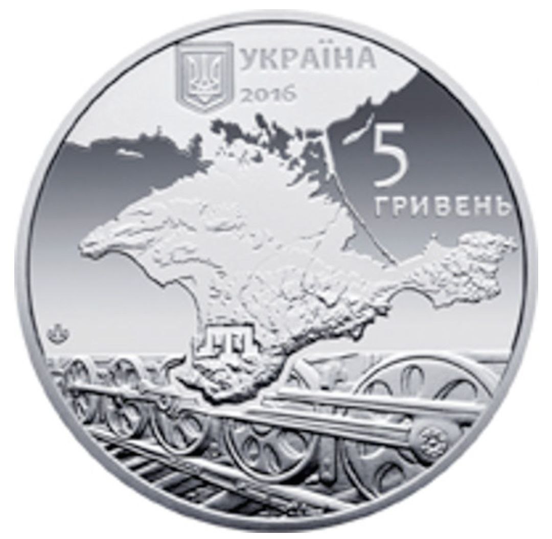 На аверсі монети розміщено: малий Державний Герб України, напис УКРАЇНА, рік карбування монети 2016, номінал – 5/ГРИВЕНЬ та композицію: на дзеркальному тлі – карта Кримського півострова, на якій зображено герб кримських татар – тамгу, унизу – колеса паротяга, що відбуває, як символ депортації кримськотатарського народу; ліворуч на дзеркальному тлі – логотип Банкнотно-монетного двору Національного банку України.