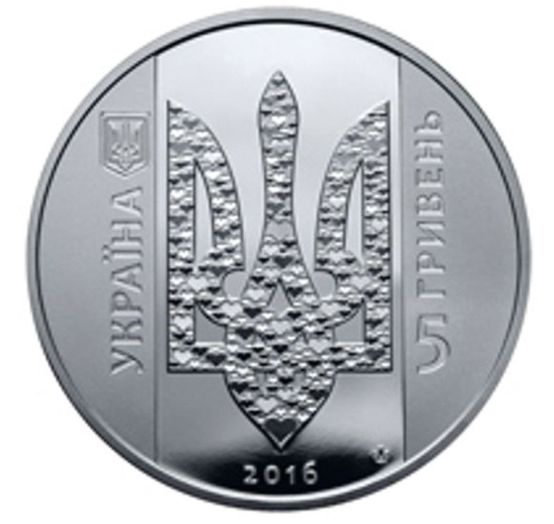 На аверсі монети розміщено: ліворуч – малий Державний Герб України та напис УКРАЇНА (вертикально); на дзеркальному тлі стилізовано зображено тризуб – Знак Княжої Держави Володимира Великого, що складається із різновеликих стилізованих сердець, які символізують самопожертву та добродійництво; номінал 5 ГРИВЕНЬ (вертикально праворуч), унизу – рік карбування монети 2016 та логотип Банкнотно-монетного двору Національного банку України.