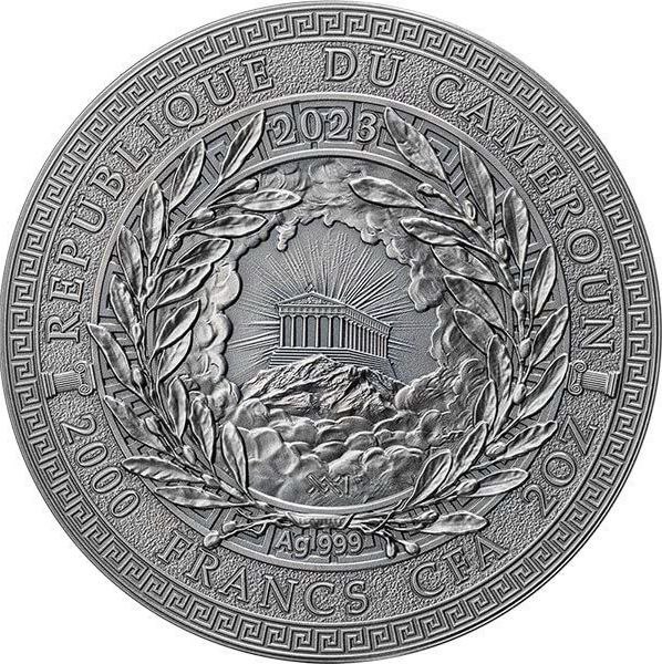 Аверс монети містить офіційні атрибути Камеруну: у центрі — зображення Парфенону на Акрополі в променях сонця, що символізує вершину античної цивілізації. Композицію обрамляє вінок з лаврових і дубових гілок. По колу розміщені написи «RÉPUBLIQUE DU CAMEROUN», рік випуску «2023», номінал «2000 FRANCS CFA» та технічні дані «2 OZ Ag 999».