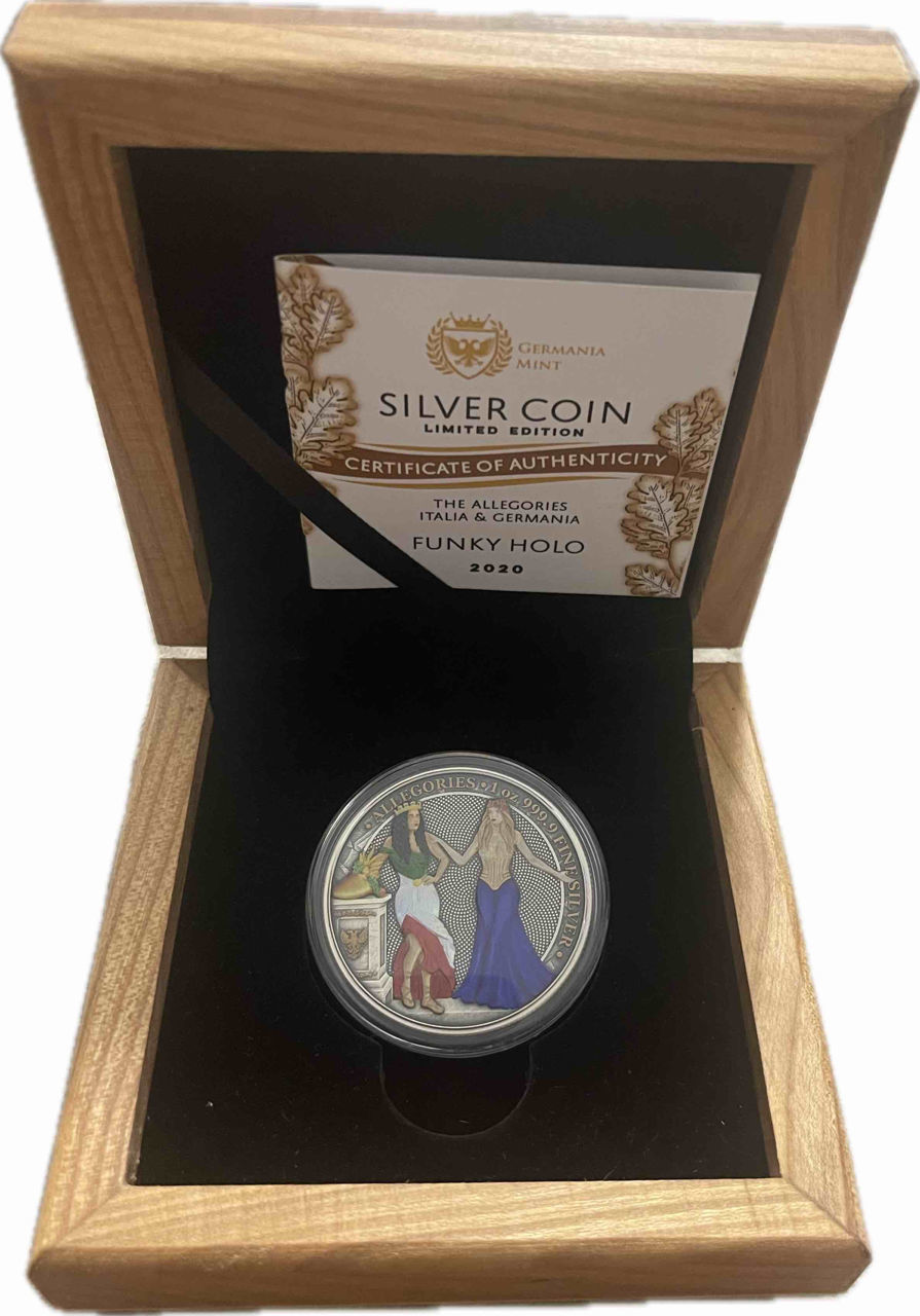 Колекційна срібна монета “Алегорія – Італія і Германія” Funky Holo 31,1 г 2020 рік