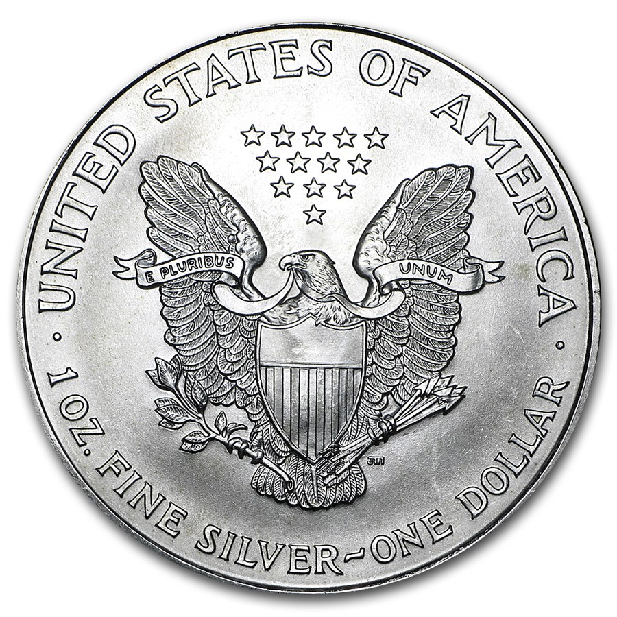 Реверс прикрашений гербом США — орлом із розпростертими крилами, який тримає оливкову гілку та стріли. Над орлом розташовані 13 зірок, що символізують перші колонії. Навколо зображення викарбувані написи «UNITED STATES OF AMERICA», «1 OZ. FINE SILVER – ONE DOLLAR» та девіз «E PLURIBUS UNUM».