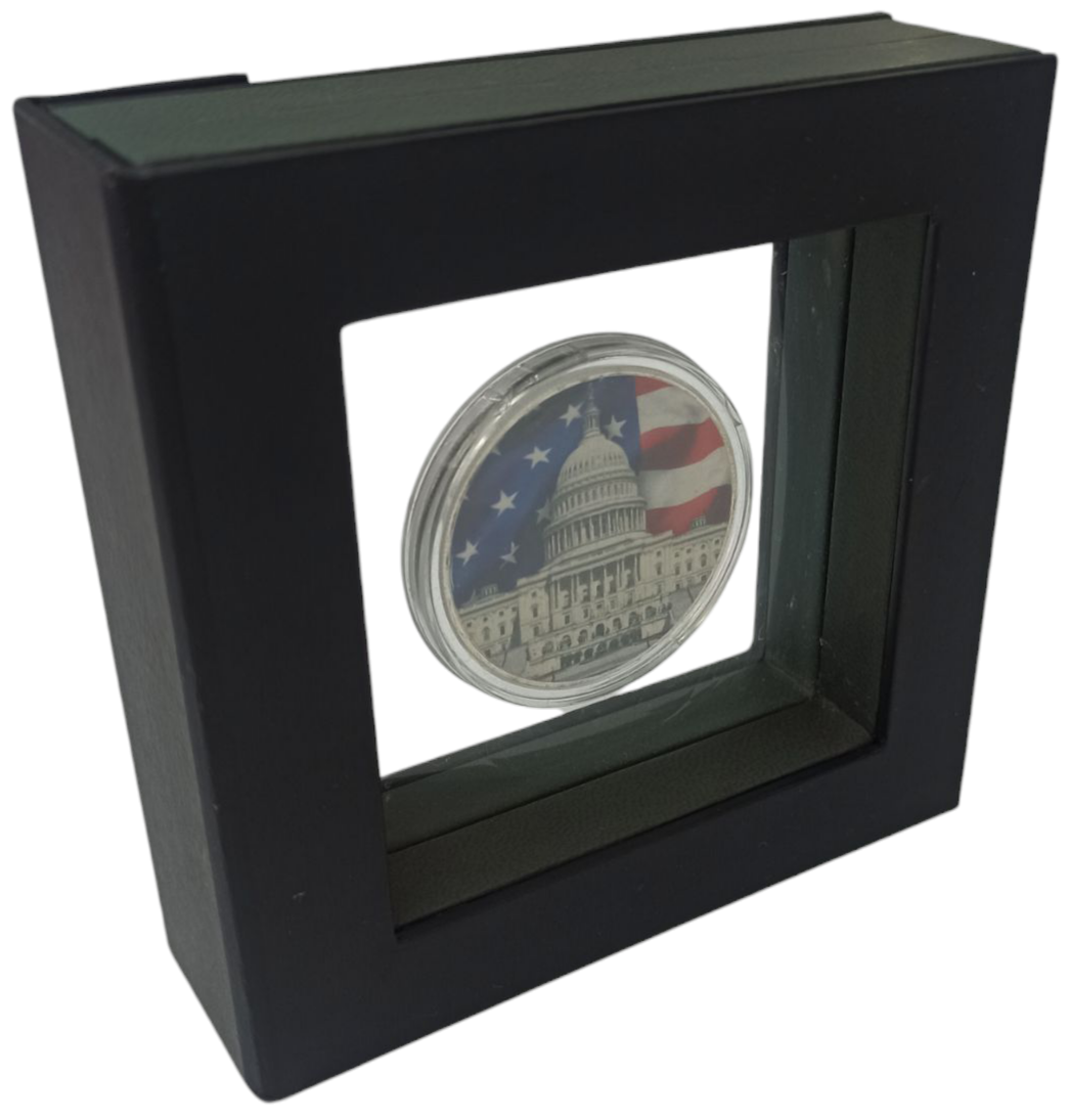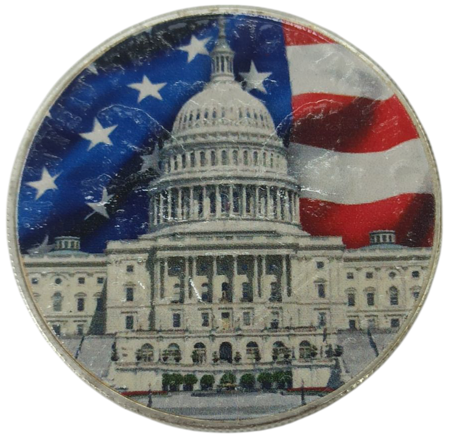 Реверс монети прикрашено кольоровим зображенням Капітолію США на фоні американського прапора. Цей дизайн символізує єдність, демократію та державну міць країни. Яскраві кольори прапора надають монеті ефектного вигляду, поєднуючи нумізматичну майстерність із сучасною технологією друку.