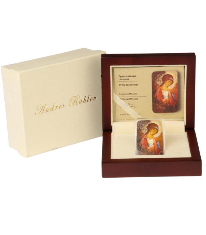 Срібна монета «Архангел Михаїл» із серії Orthodox Shrines – Andrei Rublev Icons («Православні святині – Ікони Андрія Рубльова») випущена у 2012 році державою Ніуе. Вона відзначається вишуканим дизайном і духовною глибиною, вшановуючи одного з найшанованіших небесних воїнів — Архангела Михаїла, покровителя віри, мужності та захисту.