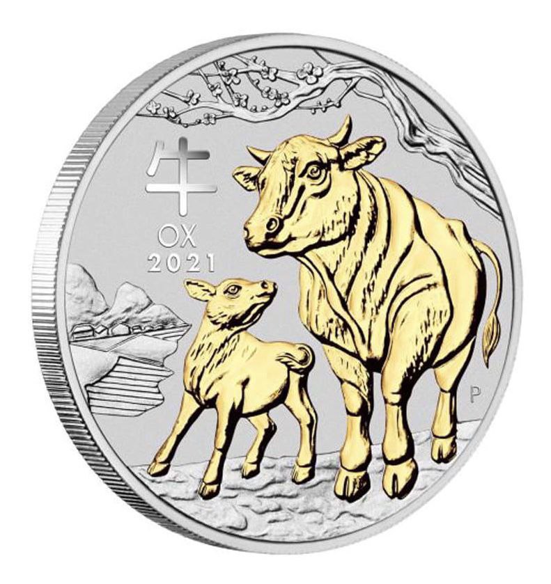 Колекційна срібна монета “Australian Lunar Series III – Рік Бика” GILDED 31,1 г 2021 рік