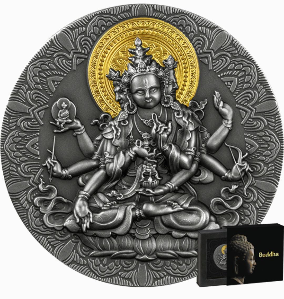Срібна монета «Будда – Ваджрасаттва» 2020 року — це вражаючий витвір сакрального мистецтва, присвячений буддійському божеству очищення та духовного просвітлення. Вона втілює ідею внутрішнього балансу, мудрості та безмежного співчуття, поєднуючи глибоку символіку Сходу з майстерністю сучасного карбування.