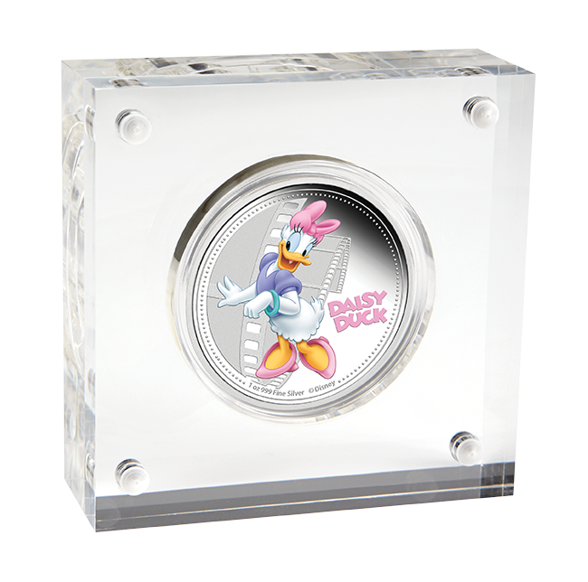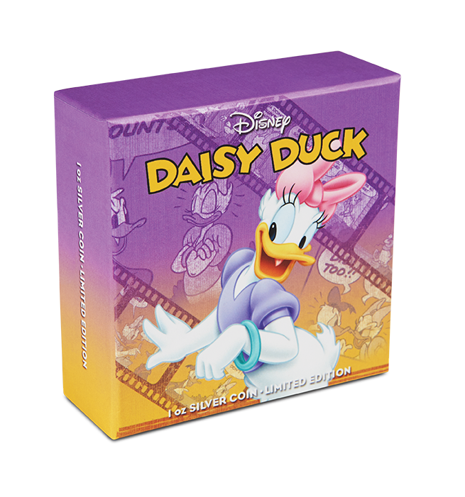 Срібна монета «Daisy Duck» 2014 року, випущена від імені острова Ніуе, присвячена одній із найвідоміших героїнь студії Disney — чарівній Дейзі Дак. Ця монета є частиною офіційної колекційної серії, створеної на честь класичних персонажів мультфільмів Disney, які протягом десятиліть залишаються символами радості, доброти та яскравого дитинства. Вона поєднує у собі витончену художню роботу, якість карбування та впізнавану атмосферу казкового світу Walt Disney, що робить її справжнім скарбом для колекціонерів і шанувальників анімації.