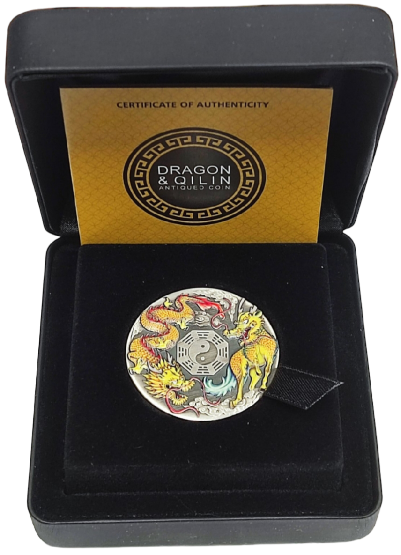 Колекційна срібна монета “Дракон і Цілінь” 62,2 г 2022 рік