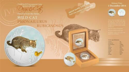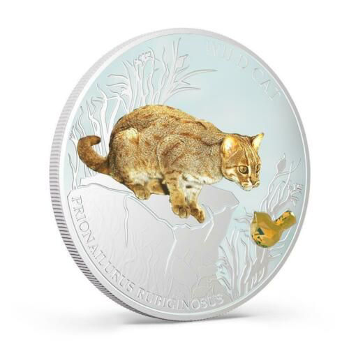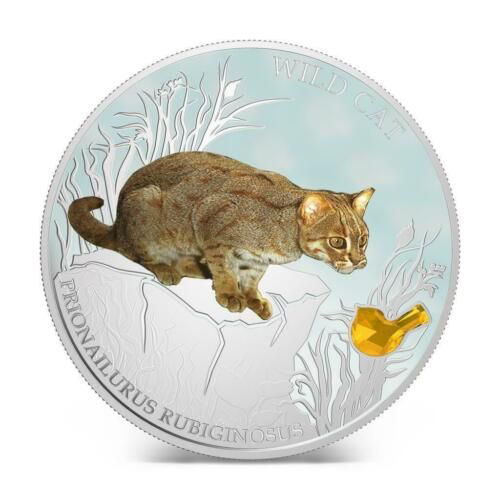 Срібна монета «Плямистий рудий кіт» (Prionailurus rubiginosus) випущена у 2014 році від імені держави Фіджі. Вона належить до серії, присвяченої диким кішкам світу, і присвячена одному з найменших представників родини котячих. Ця монета не лише захоплює деталізацією зображення, а й несе природоохоронний сенс, привертаючи увагу до зникаючих видів.