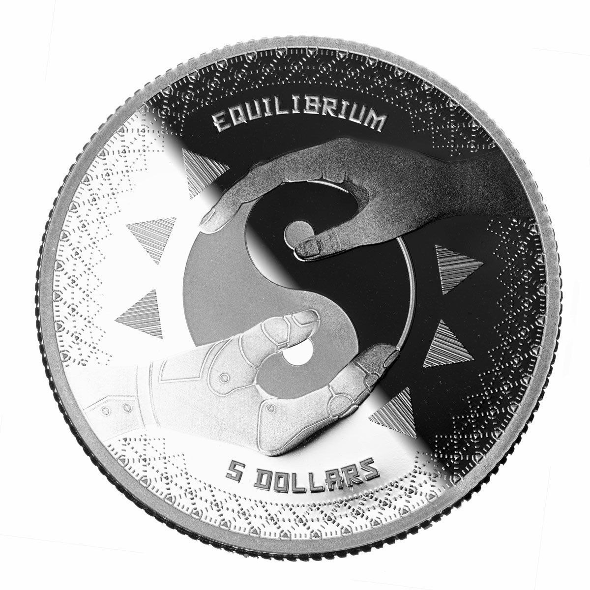 Срібна монета «Equilibrium» 2020 від держави Токелау присвячена темі гармонії між людиною та технологіями, відображаючи сучасне прагнення до балансу між природним і штучним світом. Вона символізує ідею співіснування, у якій прогрес не руйнує природу, а взаємодіє з нею в єдиній системі.