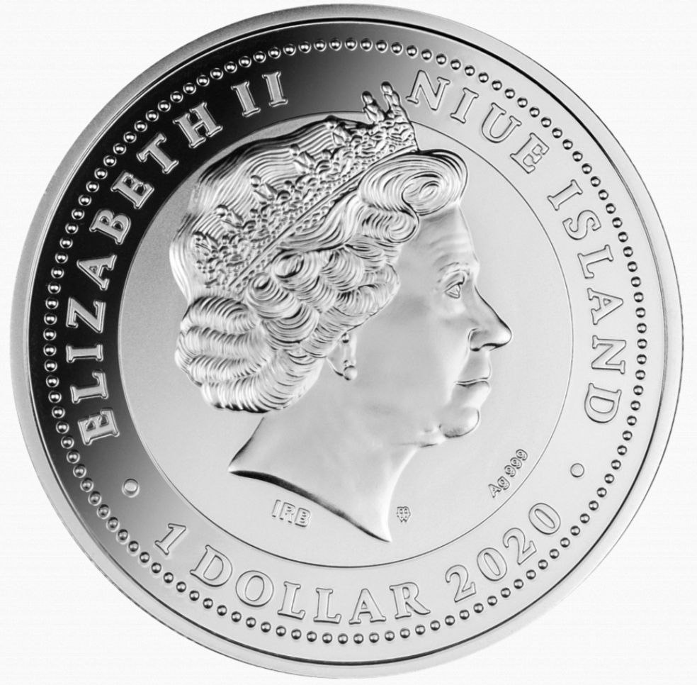 Аверс монети традиційно прикрашений портретом Її Величності Королеви Єлизавети II. Навколо розміщені написи «ELIZABETH II», «NIUE ISLAND», «1 DOLLAR 2020» та позначення металу «Ag 999». Дзеркальне тло надає монеті шляхетного блиску та контрастує з матовими елементами рельєфу.
