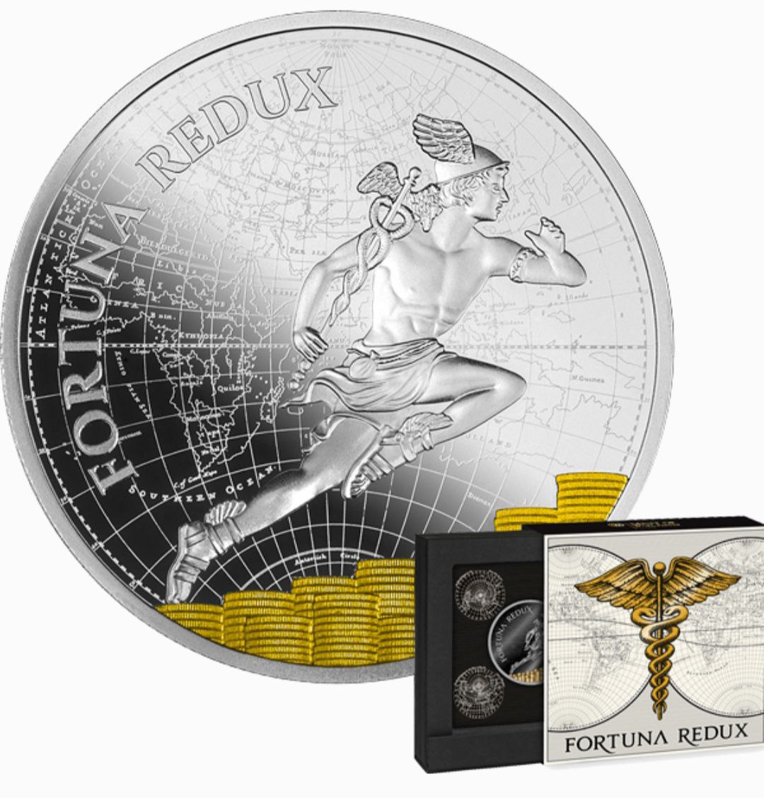 Срібна монета «Fortuna Redux» 2020 року — це елегантне втілення ідеї удачі, процвітання та благополучного повернення. Вона присвячена римській богині Фортуні, покровительці долі та щасливих обставин, яка дарує людям успіх і захищає під час подорожей. Ця монета — поєднання античної символіки, сучасного дизайну та бездоганної нумізматичної майстерності.