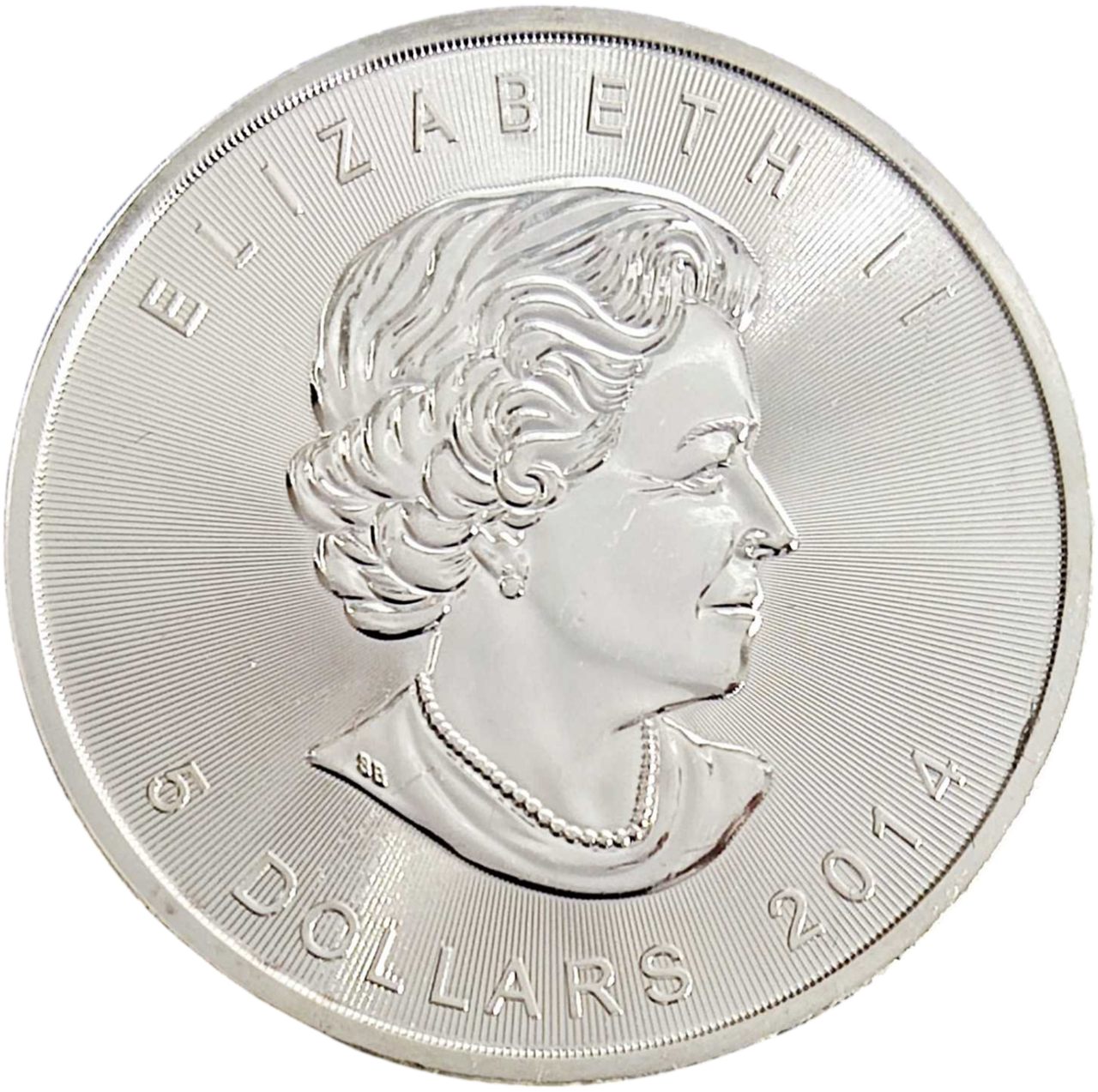 Реверс прикрашає портрет королеви Єлизавети ІІ. Тло, оформлене концентричними лініями, створює ефект сяйва навколо профілю монарха. Навколо портрета розміщено написи «ELIZABETH II», «5 DOLLARS» та рік випуску — 2014. Поєднання дзеркальної поверхні й матових деталей надає монеті благородного контрасту.