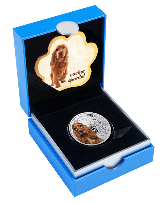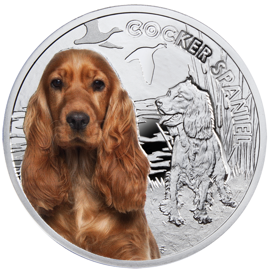 Срібна монета «Кокер-спанієль» (Cocker Spaniel) випущена у 2014 році від імені острова Ніуе. Вона належить до колекційної серії «Кращі друзі людини» (Best Friends of Man), присвяченої найпопулярнішим породам собак, які стали справжніми символами дружби, вірності та відданості.
