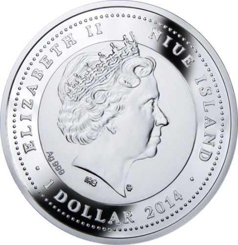 Аверс монети містить традиційне зображення Її Величності Королеви Єлизавети II у профіль. Навколо розміщено написи: «ELIZABETH II», «NIUE ISLAND», «1 DOLLAR» і рік випуску «2014». У нижній частині зазначено пробу металу — «Ag 999».