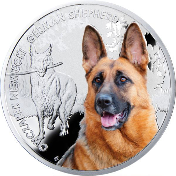 Срібна монета «Німецька вівчарка» (German Shepherd) випущена у 2014 році від імені острова Ніуе. Вона входить до серії «Кращі друзі людини» (Best Friends of Man), присвяченої найвідомішим і найвідданішим породам собак у світі.