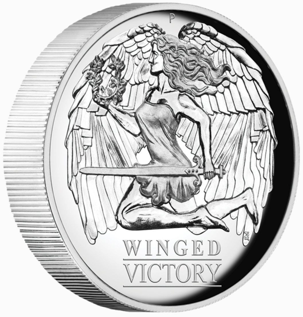 Срібна монета «Крилата Перемога» 2021 року — це вражаюче втілення образу перемоги, сили духу та тріумфу над труднощами. Випущена Пертським монетним двором (Perth Mint, Австралія), вона поєднує класичну естетику з бездоганною якістю виконання. Символіка монети натхненна образом античної богині Ніки — крилатої перемоги, яка здавна уособлює натхнення, сміливість і невтомне прагнення до звершень.