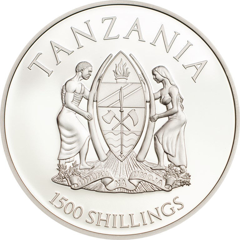 Аверс: відображає герб Танзанії і номінал монети 1500 шилінгів.