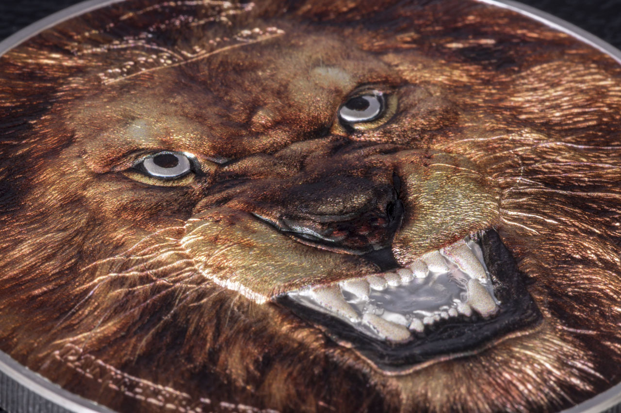 Ця красива срібна монета вагою в 2 унції входить в серію «Рідкісна дика природа», присвячена дивовижним тваринам в світі. У цьому випуску монета Лев оснащена технологією Smartminting у неї яскраві кольори, якість Proof. Тираж обмежений 999 екземплярами по всьому світу.