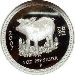 Колекційна срібна монета “Lunar I – Рік Свині” PROOF 31,1 г 2007 рік
