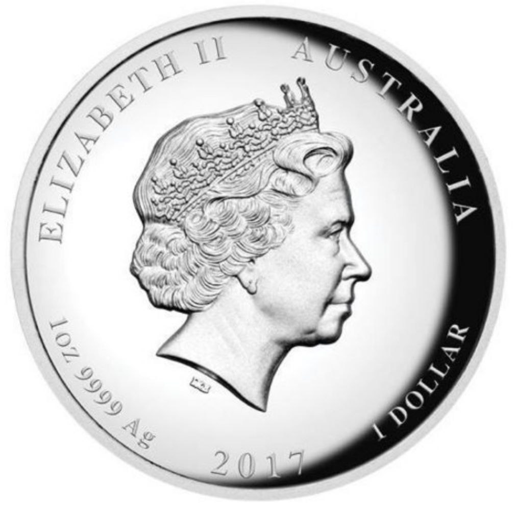 На аверсі монети зображено портрет Її Величності Королеви Єлизавети II. Навколо портрета розташовані написи «ELIZABETH II», «AUSTRALIA», а також вказані рік випуску «2017», номінал «1 DOLLAR» і позначення металу «1 oz 9999 Ag». Дзеркальне поле та чіткість гравіювання підкреслюють статус монети як офіційного платіжного засобу Австралії.