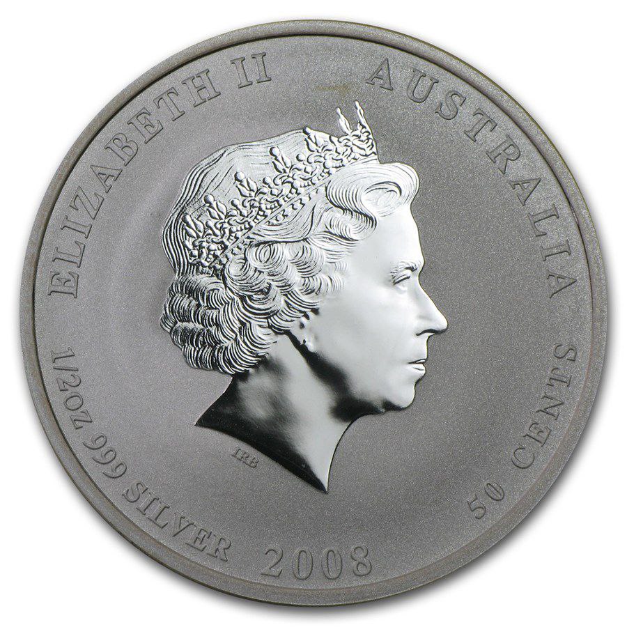 На аверсі монети розміщено портрет Її Величності Королеви Єлизавети II. Навколо нього викарбувані написи «ELIZABETH II», «AUSTRALIA», номінал «50 CENTS», рік випуску «2008» та вага з пробою металу — «1/2 OZ 999 SILVER». Дзеркальна поверхня портрета на матовому фоні створює ефект контрасту, що підкреслює елегантність та якість виконання монети.
