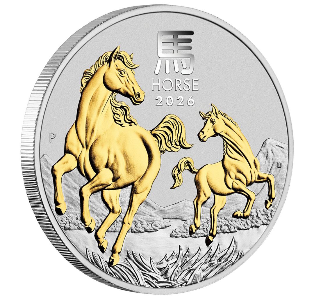 Колекційна срібна монета “Lunar III – Рік Коня” GILDED 31,1 г 2026 рік