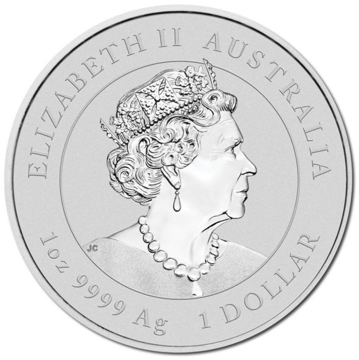 Аверс монети прикрашений портретом Її Величності королеви Єлизавети II у діадемі. Навколо розташовані написи «ELIZABETH II», «AUSTRALIA», «1 DOLLAR» та технічні характеристики — «1 oz 9999 Ag». Цей дизайн підкреслює офіційний статус монети як платіжного засобу та зберігає класичний стиль усіх монет Пертського монетного двору.