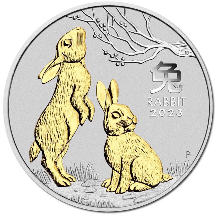 Колекційна срібна монета «Lunar III – Рік Кролика» GILDED 31,1 г 2023 рік
