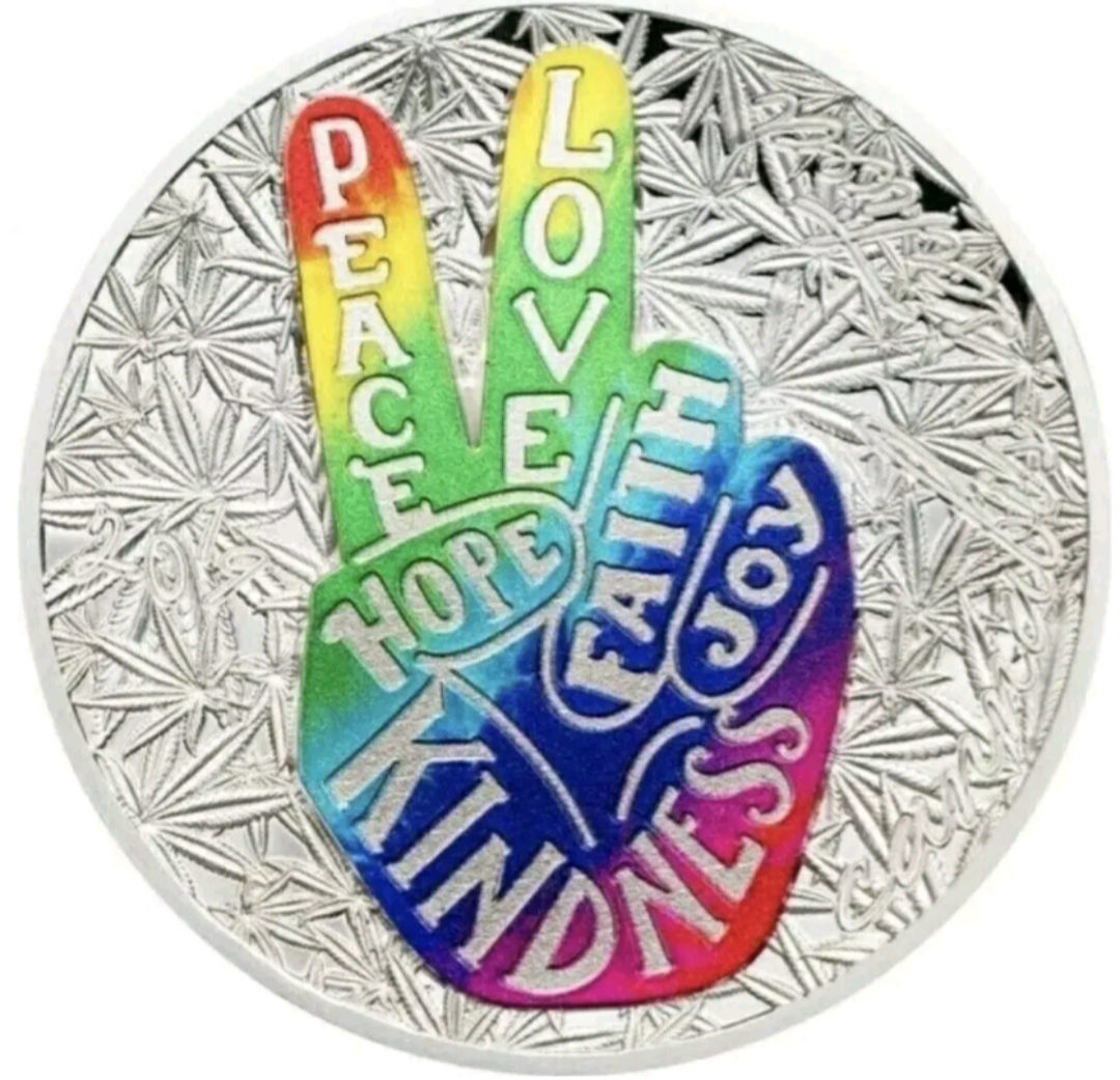 Срібна монета «Peace and Love» — це символ миру, радості та віри в людяність, створений у яскравому кольоровому дизайні. Вона передає атмосферу свободи й гармонії, нагадуючи про важливість добра, взаєморозуміння та любові між людьми. Така монета є не лише колекційним екземпляром, а й натхненням для тих, хто цінує духовні цінності та позитивне мислення.
