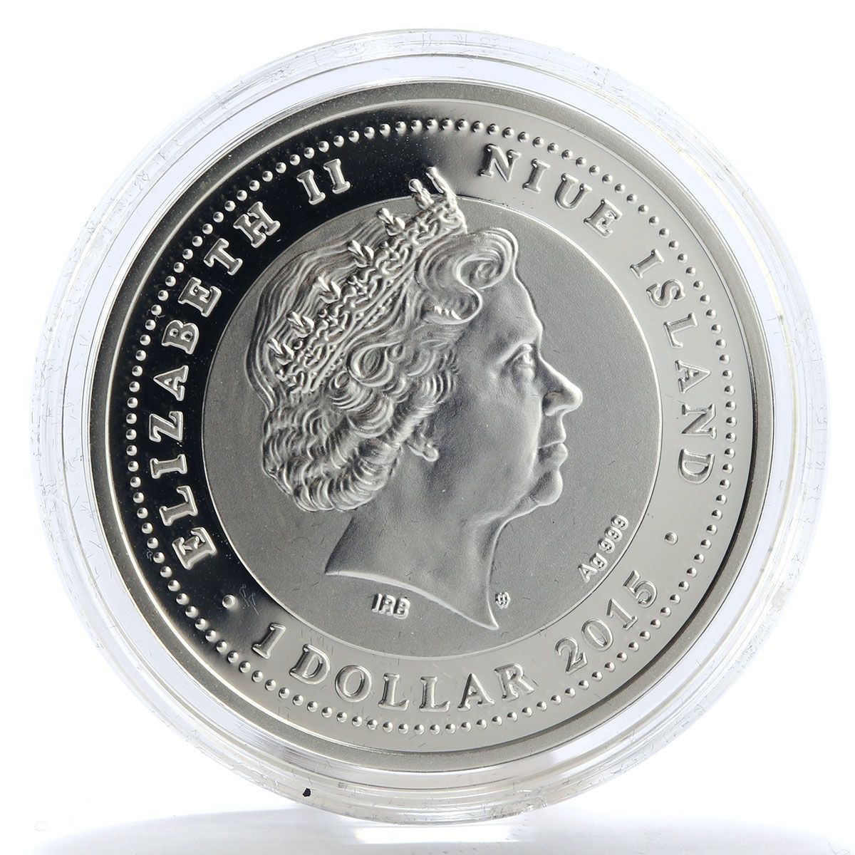 На аверсі монети розташовано портрет Її Величності Королеви Єлизавети II. Навколо профілю розміщено написи «ELIZABETH II», «NIUE ISLAND», «1 DOLLAR» і «2015», що вказують на країну-емітента, номінал і рік випуску. Унизу також присутнє позначення «Ag 999», яке свідчить про найвищу пробу срібла.