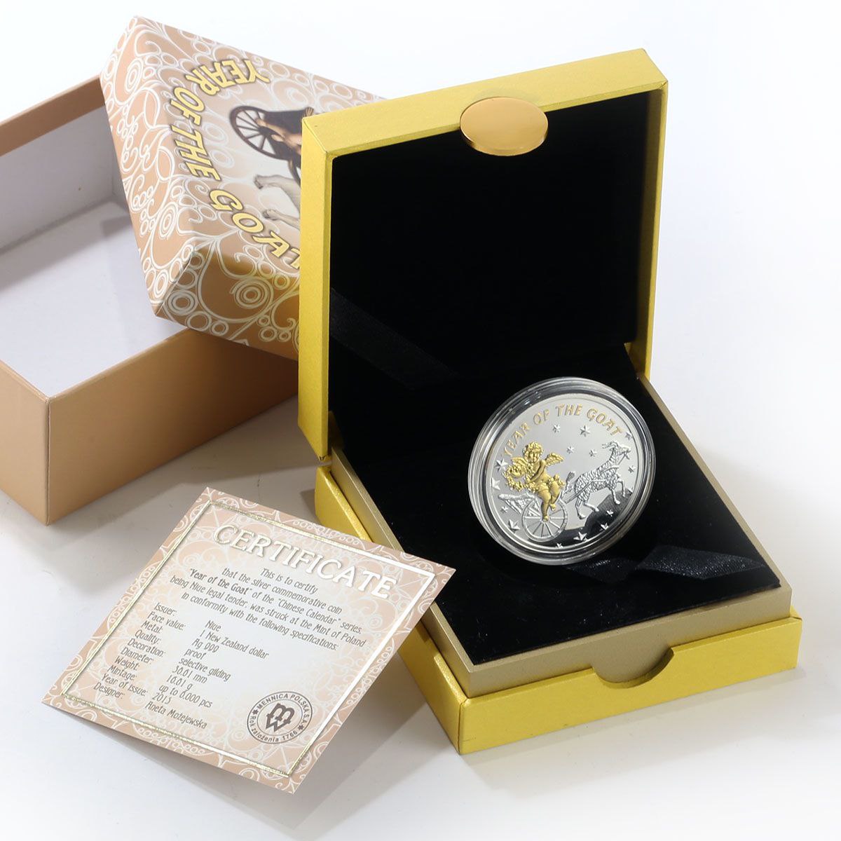 Срібна монета «Рік Кози» 2015 року, випущена островом Ніуе, присвячена року Кози за китайським зодіаком. Ця монета поєднує східну символіку з європейською художньою традицією, утворюючи гармонійний образ, що символізує мир, доброту та гармонію. Її витончений дизайн і позолочені елементи роблять випуск не лише колекційною прикрасою, а й оберегом, який приносить удачу власникові.