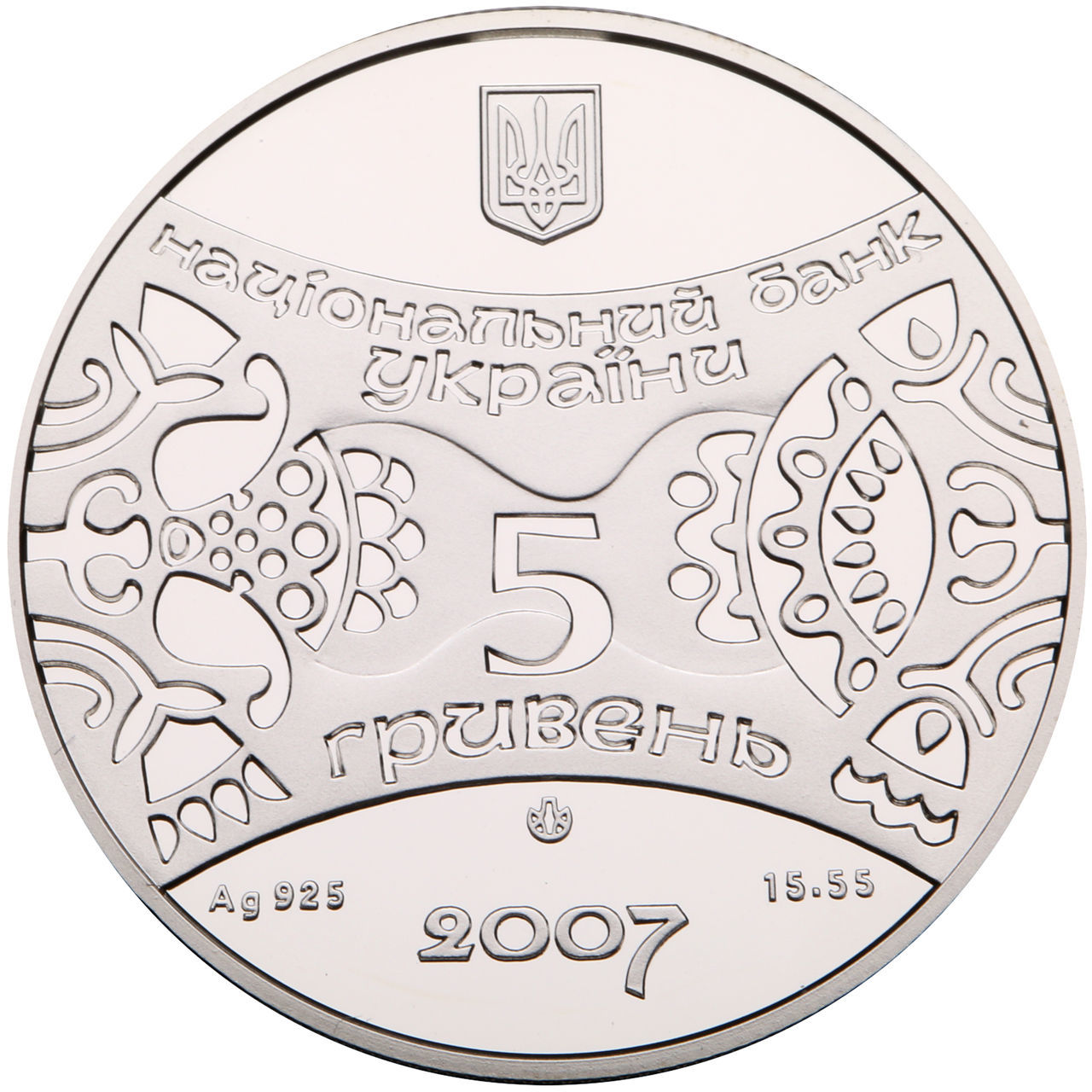 На реверсі вміщено номінал, герб України, рік карбування та декоративні елементи з національними мотивами. Художнє оформлення поєднує традиційні українські символи з сучасною технікою виконання, що підкреслює статус монети як колекційної та пам’ятної.