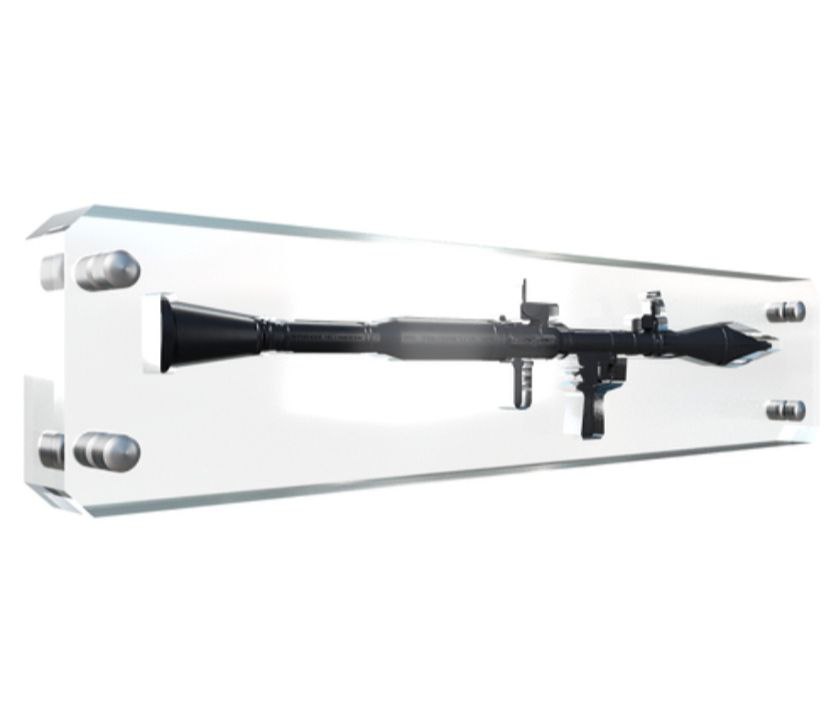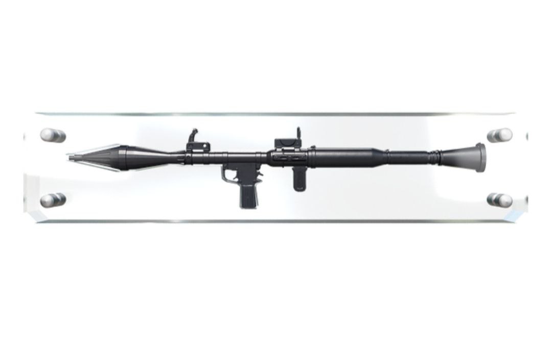 Реверс–центральний елемент — тривимірне зображення реактивного гранатомета (rocket launcher). Зброя показана з відчутною деталізацією: ствол, прицільні пристрої, рукоятки і корпус — всі елементи промодельовані з високою чіткістю. Фон реверсу має текстуроване заповнення, яке створює глибину і контраст, а навколо центрального зображення розміщено декоративний напис з назвою монети, пробою металу (Ag .999) та вагою (2 oz). В цілому реверс поєднує реалістичну технічну ілюстрацію з елементами ювелірного рельєфу.