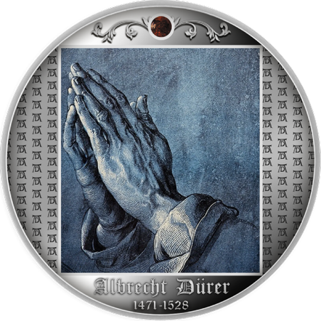 Срібна монета «Руки, що моляться» 2021 року присвячена одному з найвідоміших творів німецького художника та гравера Альбрехта Дюрера. Ця монета вшановує геніального майстра епохи Відродження, чиї роботи поєднують духовність, майстерність і глибоку людяність. Зображення молитовних рук, створене близько 1508 року, стало універсальним символом віри, надії та смирення.
