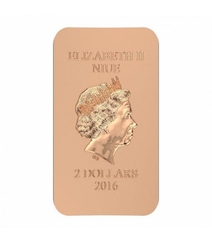 Реверс містить портрет Її Величності Королеви Єлизавети II, розміщений у центрі на дзеркальному полі, з написами «ELIZABETH II», «NIUE», «2 DOLLARS» і роком випуску «2016». Дизайн гармонійно поєднує сучасну нумізматику та традиційний релігійний стиль, підкреслюючи урочистість монети.