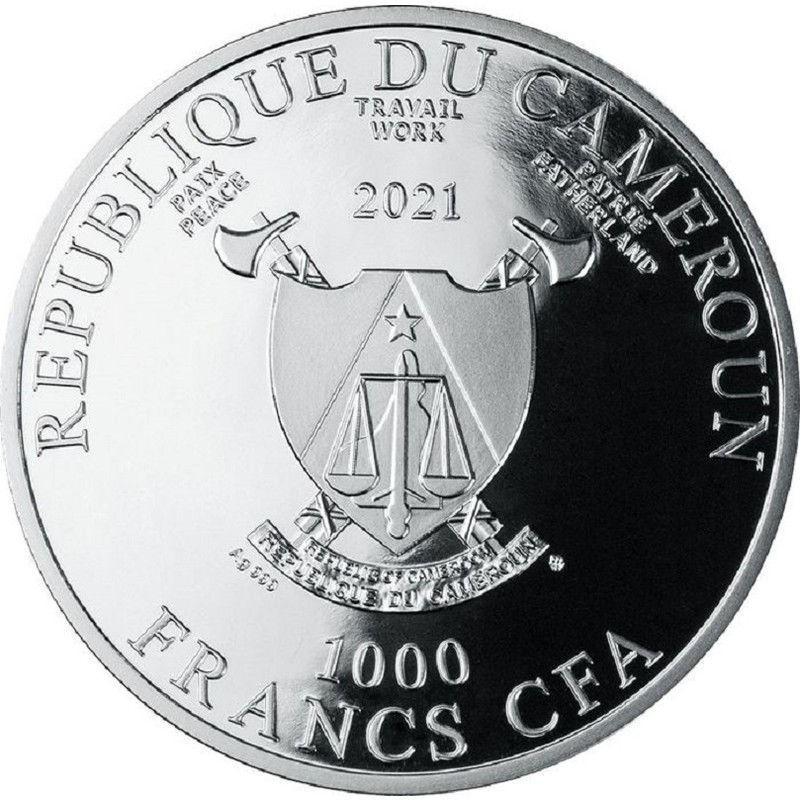 На аверсі в центрі розміщено герб Республіки Камерун, оточений написами французькою та англійською мовами. Вгорі зазначено державне гасло «Peace, Work, Fatherland», а внизу – номінал та рік випуску монети.