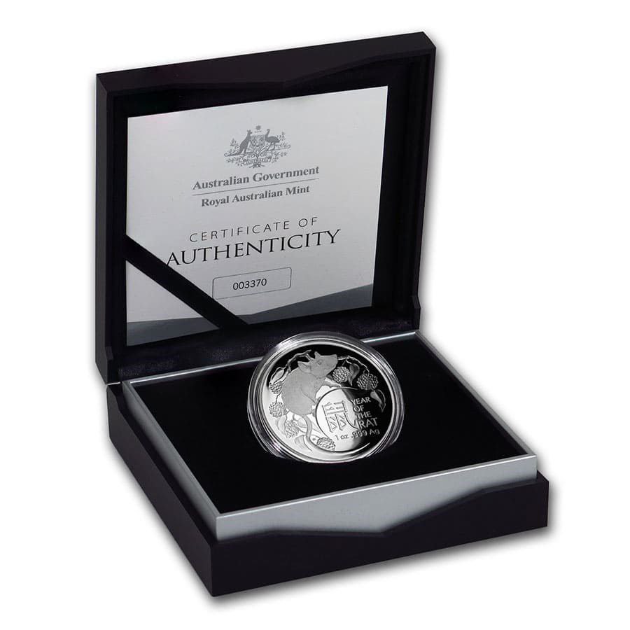 Срібна монета «Year of the Rat» 2020 року від Пертського монетного двору (Perth Mint, Австралія) відкриває третю серію Australian Lunar Series III, присвячену китайському зодіаку. Вона символізує рік Щура — тварини, що уособлює кмітливість, спостережливість і здатність швидко пристосовуватися до обставин. Ця монета поєднує витончену естетику, традиційну символіку та виняткову якість виготовлення.
