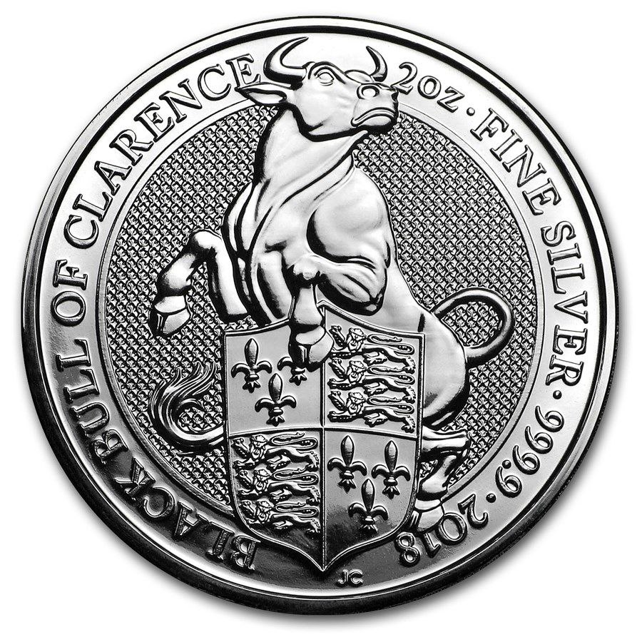 Срібна монета «Black Bull of Clarence» 2018 року — одна з найвражаючих у серії The Queen’s Beasts, випущеній Королівським монетним двором Великої Британії. Вона символізує силу, непохитність і спадкову міць англійської монархії. Чорний бик Кларенса — один із десяти геральдичних звірів, які уособлюють королівський родовід та історичну тяглість британської корони.
